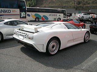 この白いブガッティーEB110は、Sさんです。非常に希少なお車です。 |