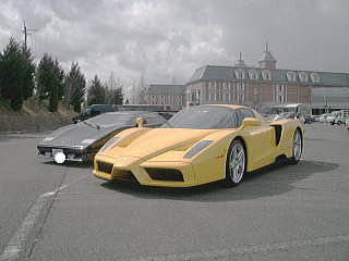 黄色いエンツォの向こう隣りは、ヨッタさんの黄色いモデナ。 |